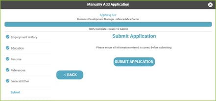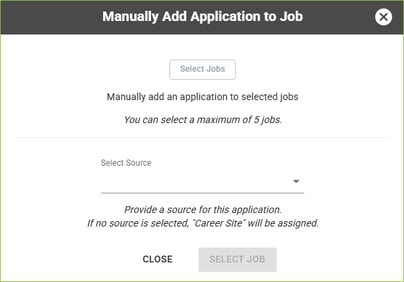 - After the job title(s) and Source have been selected click Manually Add Application.