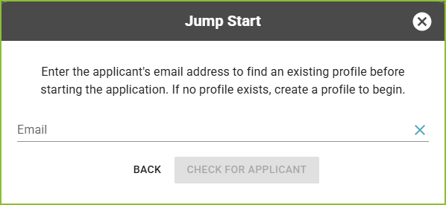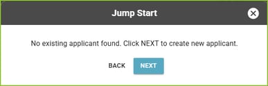 - If no applicant account is found for the email address, the user will see the following notification, and click NEXT.