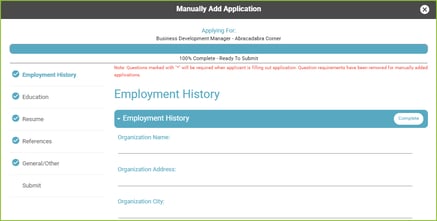 - This feature is particularly helpful if you have an applicant with disabilities or someone hands you a paper resume and you want to add the applicant to your system.