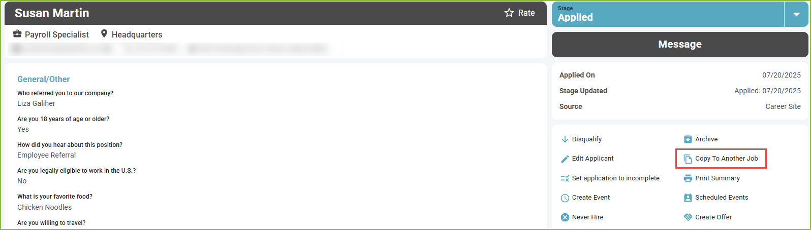 - Begin in the existing Application Detail and click Copy to Another Job.