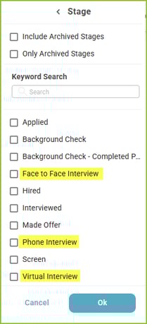 - The newly modified Application Stages will be visible in the Applicant Record as well as in all Stage filters.