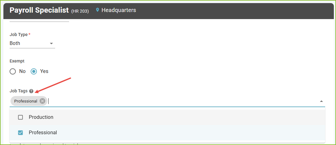 - Locate the Job Tags field.