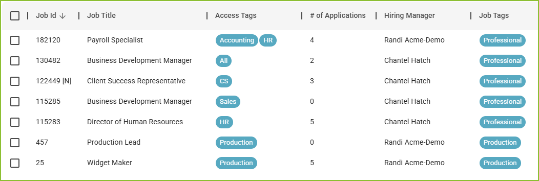 Once Job Tags have been created, users can manage them in several ways: