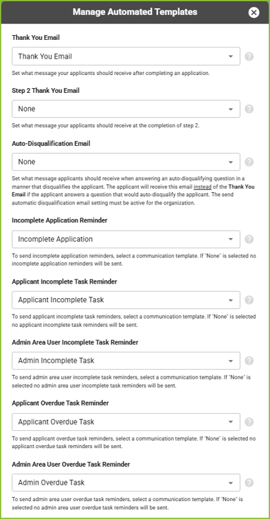 Users may want to take advantage of the ability to send custom automated communication to applicants and users.