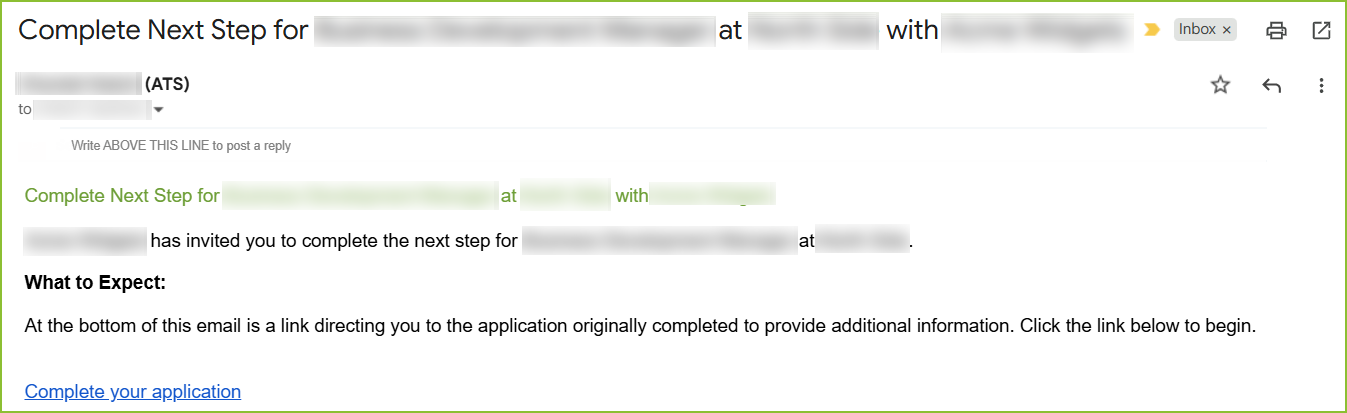 - The applicant will receive the invitation message including the custom link to complete Step 2.