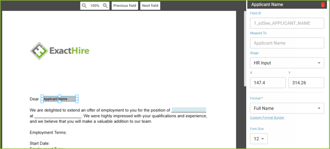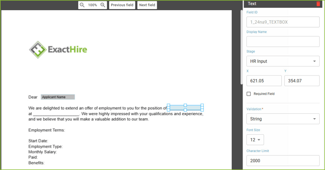 - While the field is selected, the user may use the arrow keys to fine-tune the placement of the field.