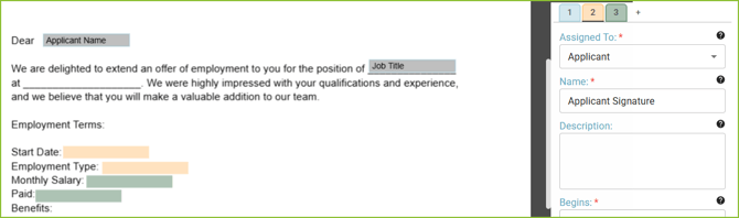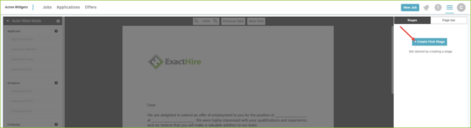 Offer Letter template(s) must be created prior to initiating the Offer Letter workflow with an applicant. When customizing an Offer Template(s), users will add properties and fields for each stage of their offer workflow.