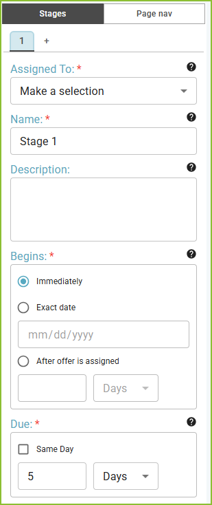 - Assigned To: Determine who should be assigned to complete the first stage - Applicant, Role, or User.