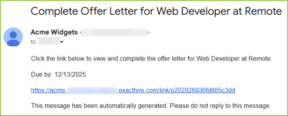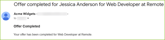 When the Offer workflow is complete a notification will be sent to the creator of the Offer and the applicant.