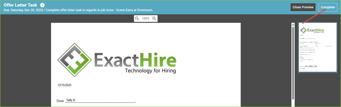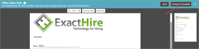 - Click Preview to Complete to preview the form prior to completing.