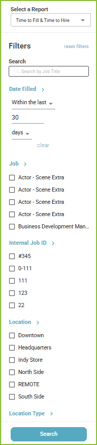 The Time to Fill & Time to Hire Report will provide metrics on the number of days from when an applicant applied for a job listing to when an applicant was moved to the "Hired" stage and the number of days a job listing was set to the "Active" status to when an applicant was moved to the "Hired" stage.
